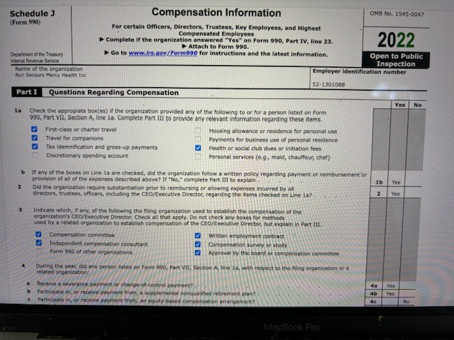 Executive Compensation at Bon Secours Mercy Health (2022)