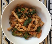 Inspired by Isa Chandra Moskowitz’s recipe for Lentil-A-Roni in Isa Does It, the Pasta Roni recipe showcases whole grain pasta, lentils, tomatoes, and greens for a delicious and nutritious meal. Isa uses raw cashews that have been soaked in water, drained and then blended with vegetable broth in a high-powered blender to make the sauce creamy but I am not a cream sauce person so I don’t use cashews. If your preference is for a creamy sauce, then by all means, soak 1/2 cup of raw (not roasted) cashews in water for a few hours and then blend away before adding to the sauce.