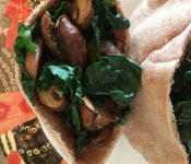 With just 4 ingredients: dark green lacinto kale, mushrooms, nutritional yeast, and whole grain pita bread, the Kale and Mushroom Pita takes about 10 minutes to make. The biggest time sap is cleaning and cutting the mushrooms and kale which can be done ahead of time (or buy pre-washed baby kale), covered and refrigerated until later in the day. Read more