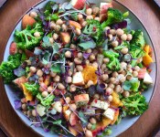 In the plant-based world, there is a common phrase “eat the rainbow” that is a constant reminder to eat a variety of fruits and vegetables every day. With that in mind, the following recipe for a salad combines greens (microgreens), fruits (apple, peach, and mango), vegetables (broccoli and carrots), and beans (garbanzo) along with lemon juice, dill, and pink peppercorns to make a delicious and nutritious super colorful salad that can be enjoyed for breakfast, lunch, or dinner. From start to finish, the salad takes about 15 minutes to make and looks as beautiful as it tastes. Read more