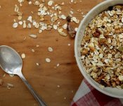 Muesli is a popular breakfast cereal that is predominately made up of rolled oats, fruits, nuts, seeds, and flakes (wheat, barley, and rye). More popular in Europe than in the US, muesli is often confused with granola, another healthy breakfast cereal. Whereas muesli and granola share many qualities, muesli is different in primarily three ways: muesli is usually a raw cereal meaning the ingredients are rarely baked or toasted before combined; muesli doesn’t have an oil to tie the ingredients together, and typically little or no sweetener is added to muesli because of the heavy concentration of dried fruits.There are, however many variations of muesli to appeal to a wide variety of tastes. Read more